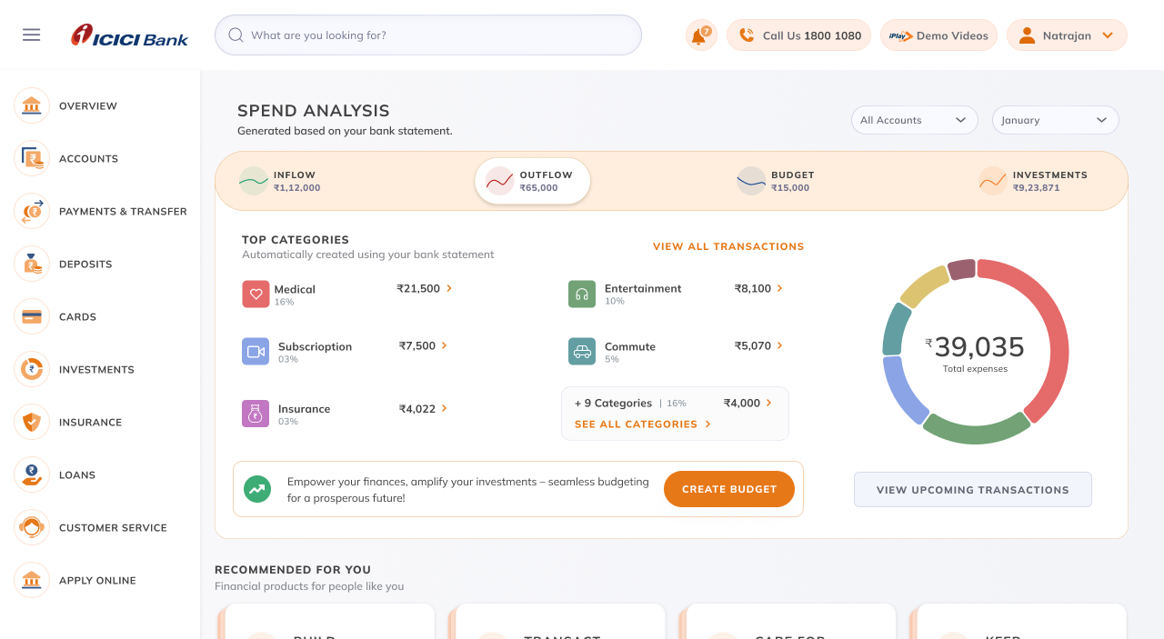 Discover, a product part of the ICICI Bank's iMobile app, stands out as a sophisticated tool designed to empower users in overseeing their financial health. This feature streamlines the understanding of income, expenses, and investments, providing a user-friendly platform for effective financial resource management. Discover not only facilitates a clear overview of one's financial landscape but also empowers users to make informed decisions and encourages financial prudence.